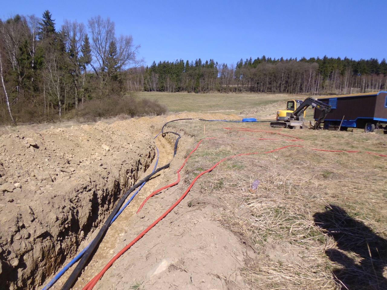 Probíhala úprava vodního zdroje a pokládka výtlačného vodovodního řadu, kabelu el. vedení, odvodňovacího potrubí k budoucí úpravně vody